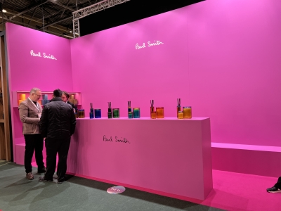 ストライプがテーマのポールスミスも、’フクシア’カラーで、