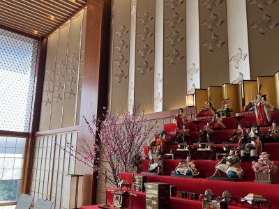 昔の別館に飾られていた雛壇がそのまま、新オークラのロビーに