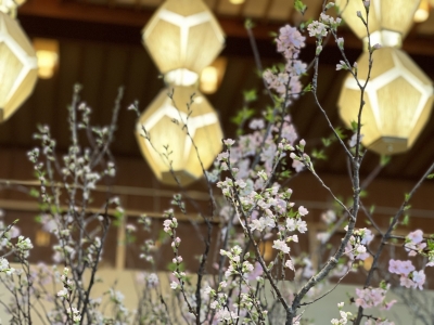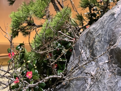大花生け鉢にも梅の花が生けられていて、春の訪れを感じます。