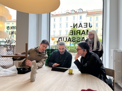 ミラノを歩き回り、今年のデザインのトレンドを見学。