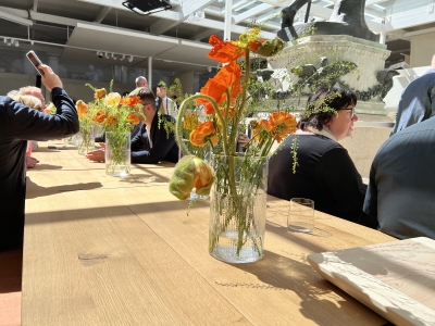 みんな楽しそうに会話されています。歴史的財産の建造物を