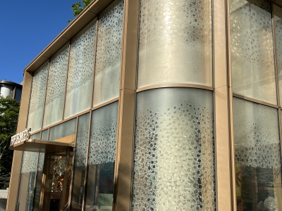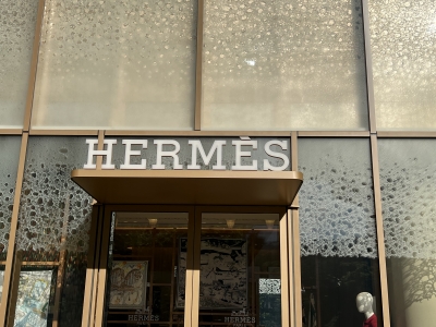麻布台ヒルズの中庭に堂々と聳え立つ、エルメスの館