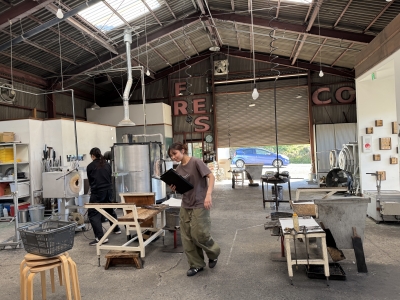車で30分くらい走ったら、この吹きガラスの工房に到着します。