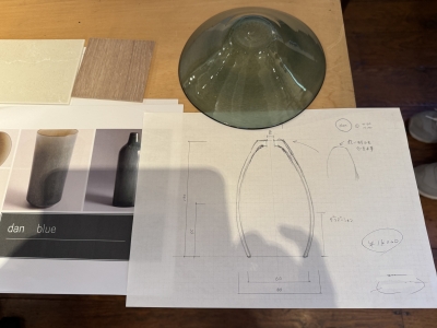 上記は今、弊社宮内理恵の方で試作している照明のデッサンと