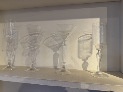 吹きガラスの食器をディスプレイして、世界観を感じて頂ければと。。。