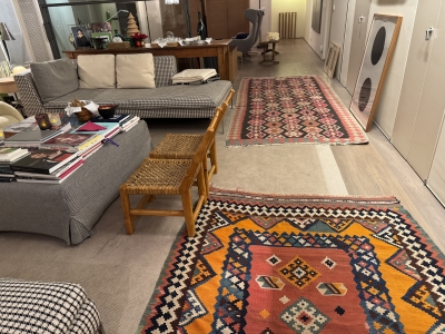 敷物は少しエスニックな物が多いです。モダンインテリアでも