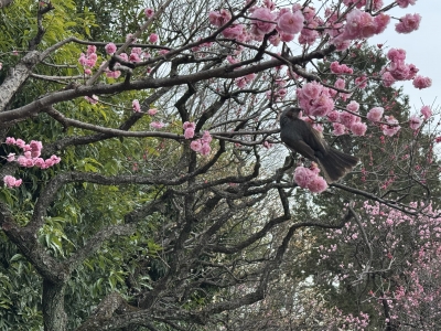 静かに梅の木を見上げていたら、鶯がまた蜜を狙っています。