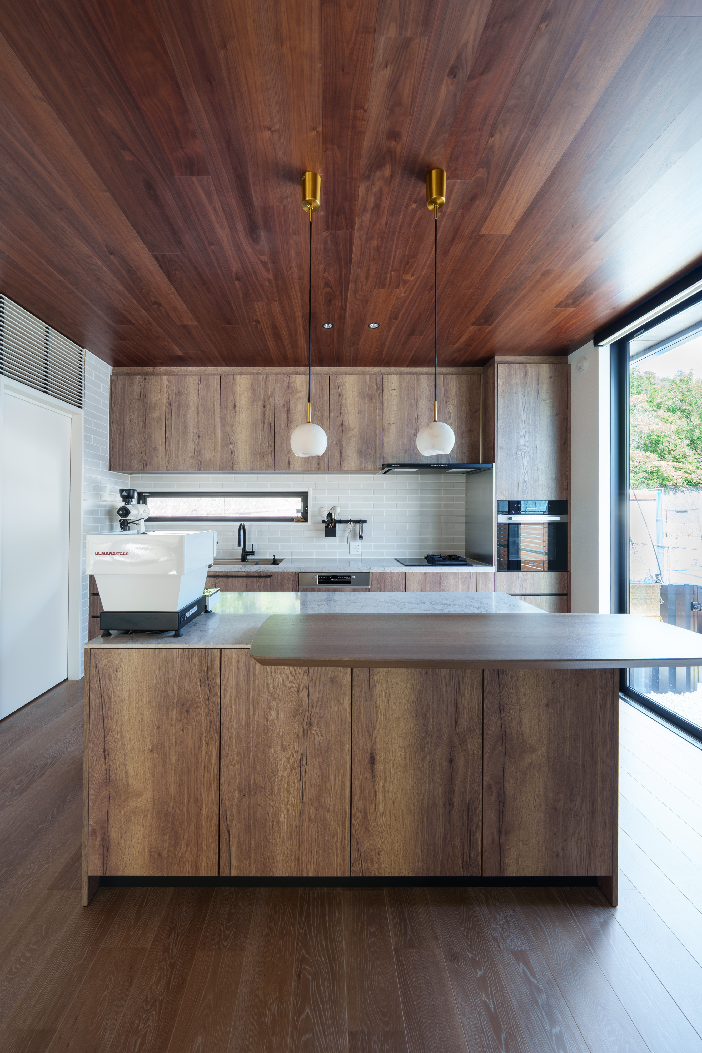 コーヒー好きなご夫婦が想い描いたキッチンは、心地よい香りに包まれたやさしい木目のキッチンでした。