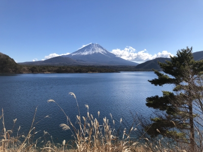 のんびりと、山中湖を車で巡って、綺麗な湖越しの
