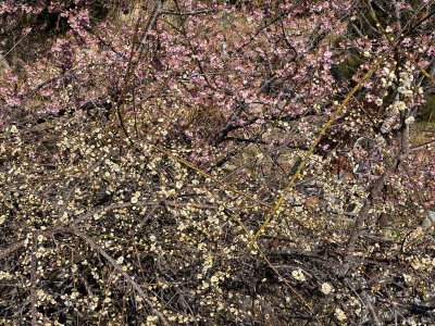 下田には所々河津桜でしょうか?ここは梅と河津桜が絡み合ってます。